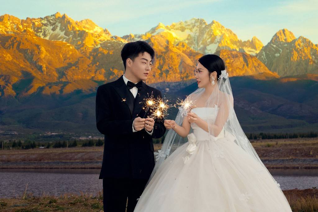 实战效果验证:一对喜欢人文风格的新人选择东巴文元素拍摄,成片被丽江文旅局选为“丽江文旅宣传素材”;一对户外爱好者新人选择小众草甸拍摄,成片在户外圈引发关注,成为户外婚礼的参考范本。